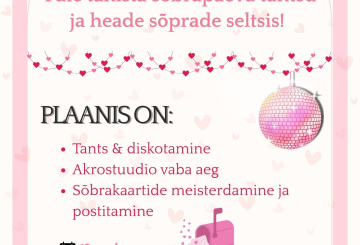 Uudised 02.02.2026 SÕBRAPÄEV MT ja VP stuudios 13.02 26.01.2026 Sõbranädal 9-15.veebruar 30.12.2025 Minu Tantsukooli Jõulukontsert 2025 - LIIKUMISE JÕUD järelkaja