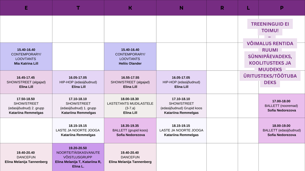 Aegade ja rendi osas palume võtta ühendust elina[at]minutantsukool.ee