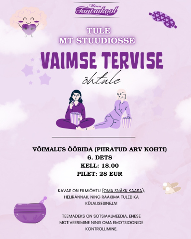 Kutsume lapsi ja noori osalema mõnusal, toetaval ja harival vaimse tervise õhtul, mis ühendab puhkamise, harivad arutelud ja lõbusad ühistegevused. Üritus toimub 6. detsember algusega 18.00 MT stuudios (Oja 19, Tallinn).